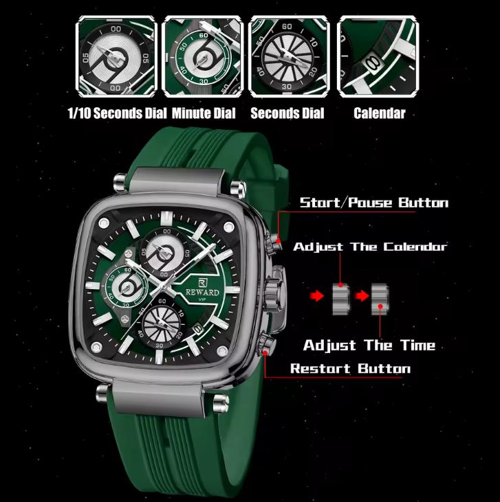 REWARD VIP Men’s Wristwatch — the perfect combination of modern design, functionality, and confident masculine style. The square metal case, striking 3D dial, and bold color options make this model a noticeable accent in any outfit — from casual to business.
